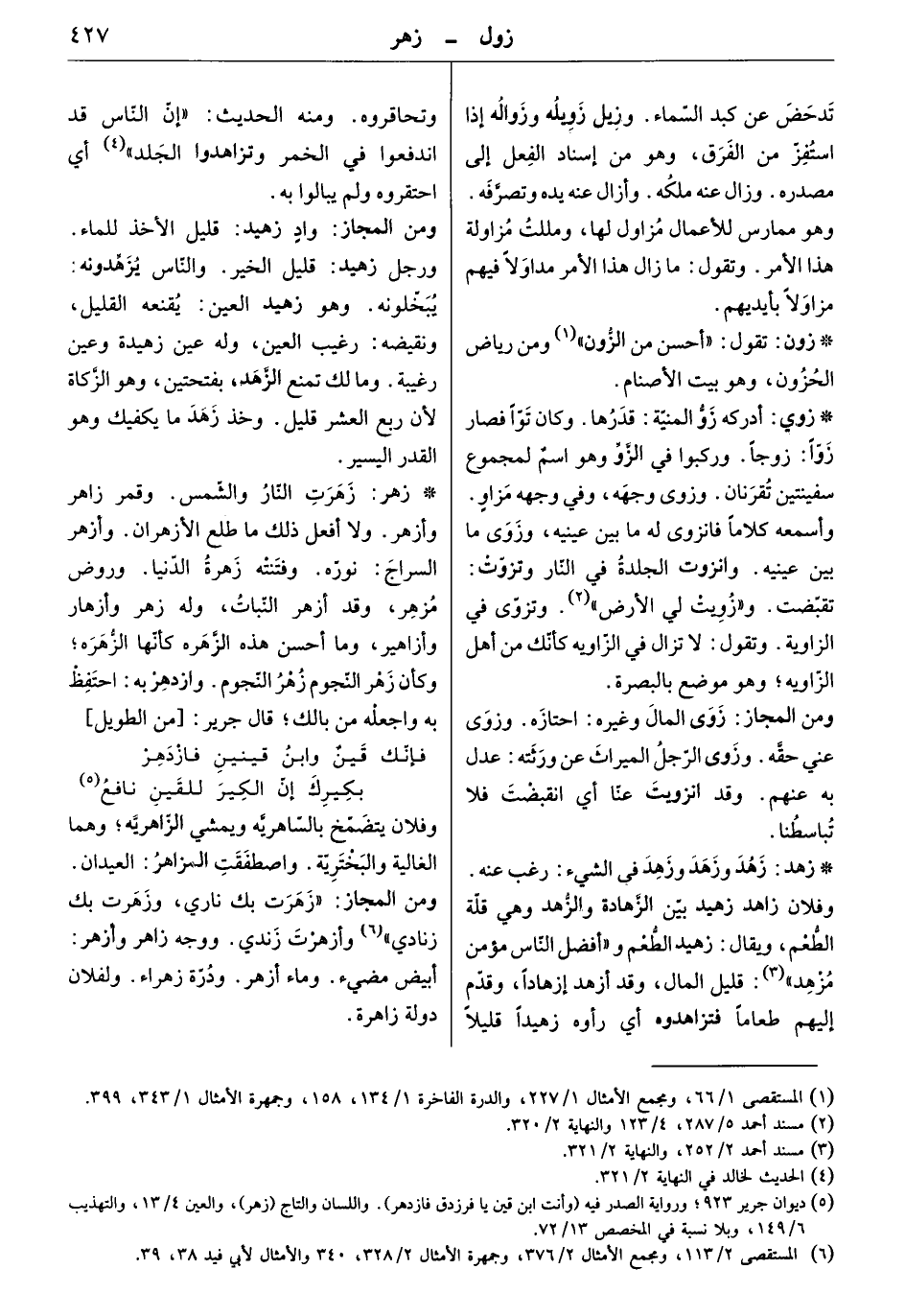 أدركه زوّ المنية: قدرها. وكان تواً، فصار زواً: زوجاً. وركبوا في الزو وهو اسم لمجموع سفينتين تقرنان. وزوى وجهه، وفي وجهه مزاو. وأسمعه كلاماً فانزوى له ما بين عينيه، وزوى ما بين عينيه. وانزوت الجلدة في النار وتزوت: تقبضت. وزويت لي الأرض. وتزوى في الزاوية. وتقول: لا تزال في الزاوية، كأنك من أهل الزاوية؛ وهو موضع بالبصرة.