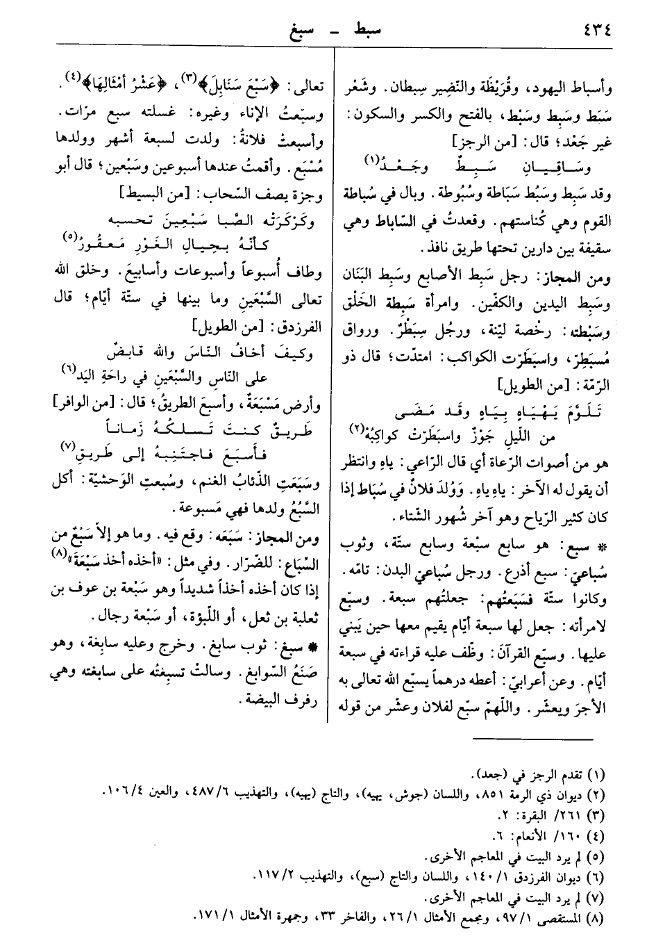 ومن المجاز: سبعه: وقع فيه. وما هو إلا سبع من السباع: للضرار. وفي مثل " أخذه أخذ سبعة " إذا كان أخذه أخذاً شديداً وهو سبعة بن عوف بن ثعلبة بن ثعل، أو اللبؤة، أو سبعة رجال.
