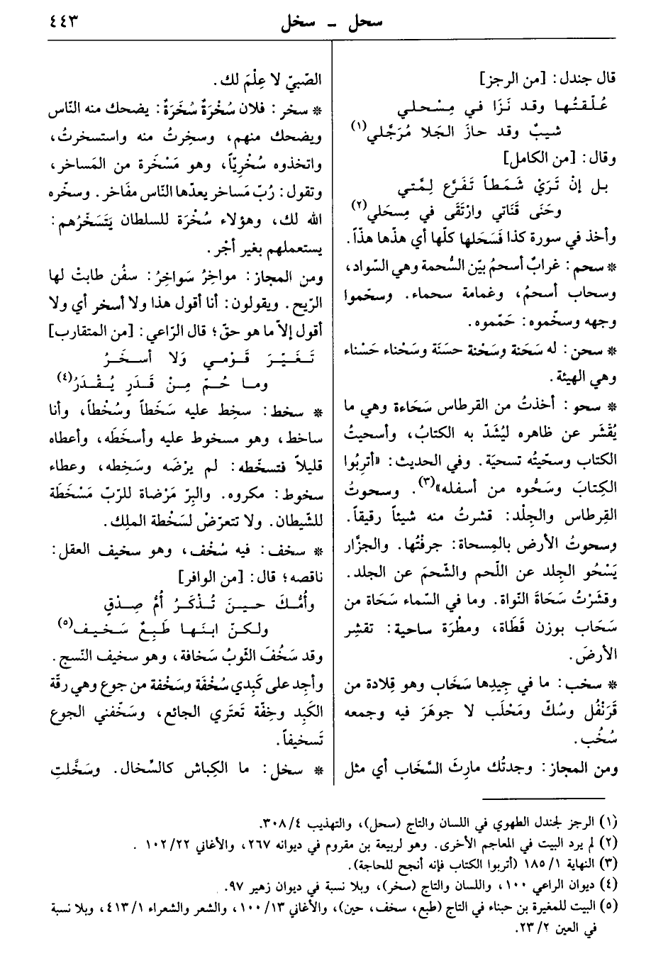 وأخذت من القرطاس سحاءة وهي ما يقشر عن ظاهره ليشد به الكتاب، وأسحيت الكتاب وسخيته تسحية. وفي الحديث " أتربوا الكتاب وسحوه من أسفله " وسحوت القرطاس والجلد: قشرت منه شيئاً رقيقاً. وسحوت الأرض بالمسحاة: جرفتها. والجزار يسحو الجلد عن اللحم والشحم عن الجلد. وقشرت سحاة النواة. وما في السماء سحاة من سحاب بوزن قطاة، ومطرة ساحية: تقشر الأرض.