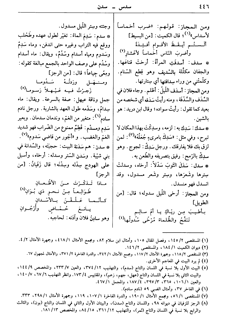 جمل وناقة عيهل: صفة بالسرعة. ويقال: ماء سدام، وسدمه طول العهد بالشاربة. ورجل نادم سادم: متغير من الغمّ، وندمان سدمان. وبعير سدم ومسدم: قطم ممنوع من الضراب فهو شديد الغم والغضب. و" أجور من قاضي سدوم ".