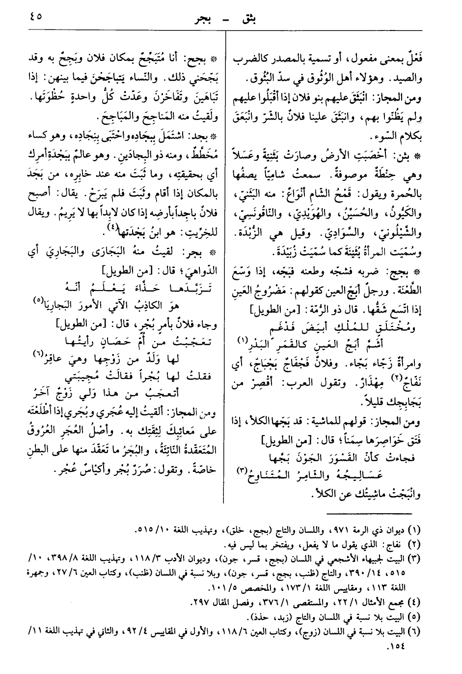 أنا متبجح بمكان فلان وبجح به وقد بجحني ذلك. والنساء يتباجحن فيما بينهن إذا تباهين وتفاخرن وعدت كل واحدة حظوتها. ولقيت منه المناجح والمباجح.