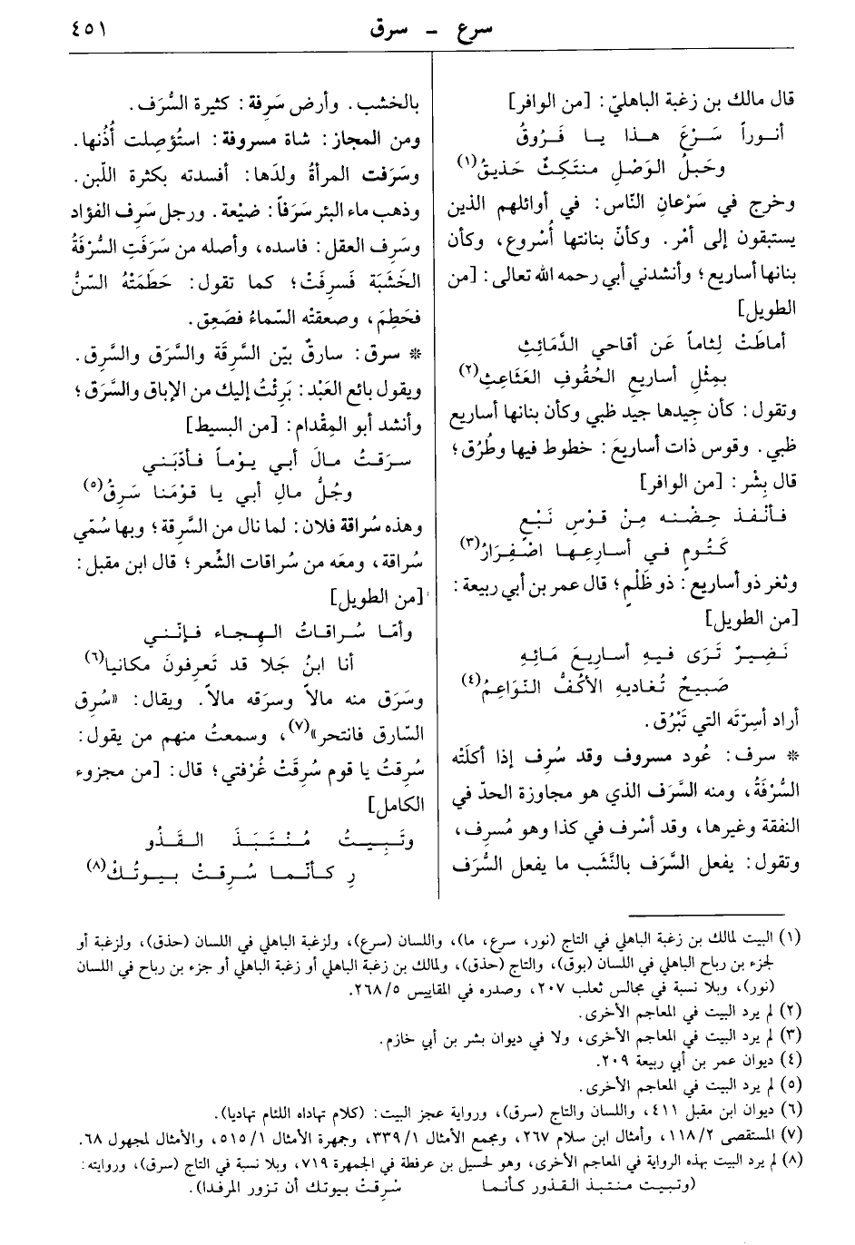 سارق بين السرقة والسرق والسرق. ويقول بائع العبد: برئت إليك من الإباق والسرق. وأنشد أبو المقدام: