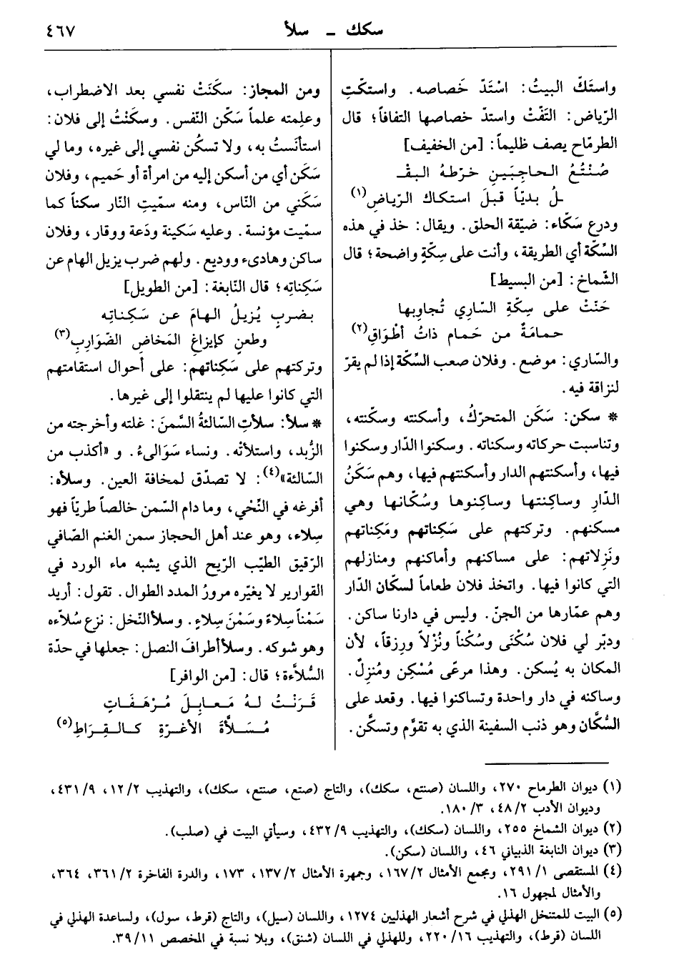 سكن المتحرك، وأسكنته وسكنته، وتناسبت حركاته وسكناته. وسكنوا الدار وسكنوا فيها، وأسكنتهم الدار وأسكنتهم فيها، وهم سكن الدار وساكنتها وساكنوها وسكانها، وهي مسكنهم. وتركتهم على سكناتهم ومكناتهم ونزلاتهم: على مساكنهم وأماكنهم ومنازلهم التي كانوا فيها. واتخذ فلان طعاماً لسكان الدار وهم عمارها من الجن. وليس في دارنا ساكن. ودبر لي فلان سكنى وسكناً ونزلاً ورزقاً، لأن المكان به يسكن. وهذا مرعًى مسكن ومنزل. وساكنه في دار واحدة وتساكنوا فيها. وقعد على السكان وهو ذنب السفينة الذي به تقوم وتسكن.