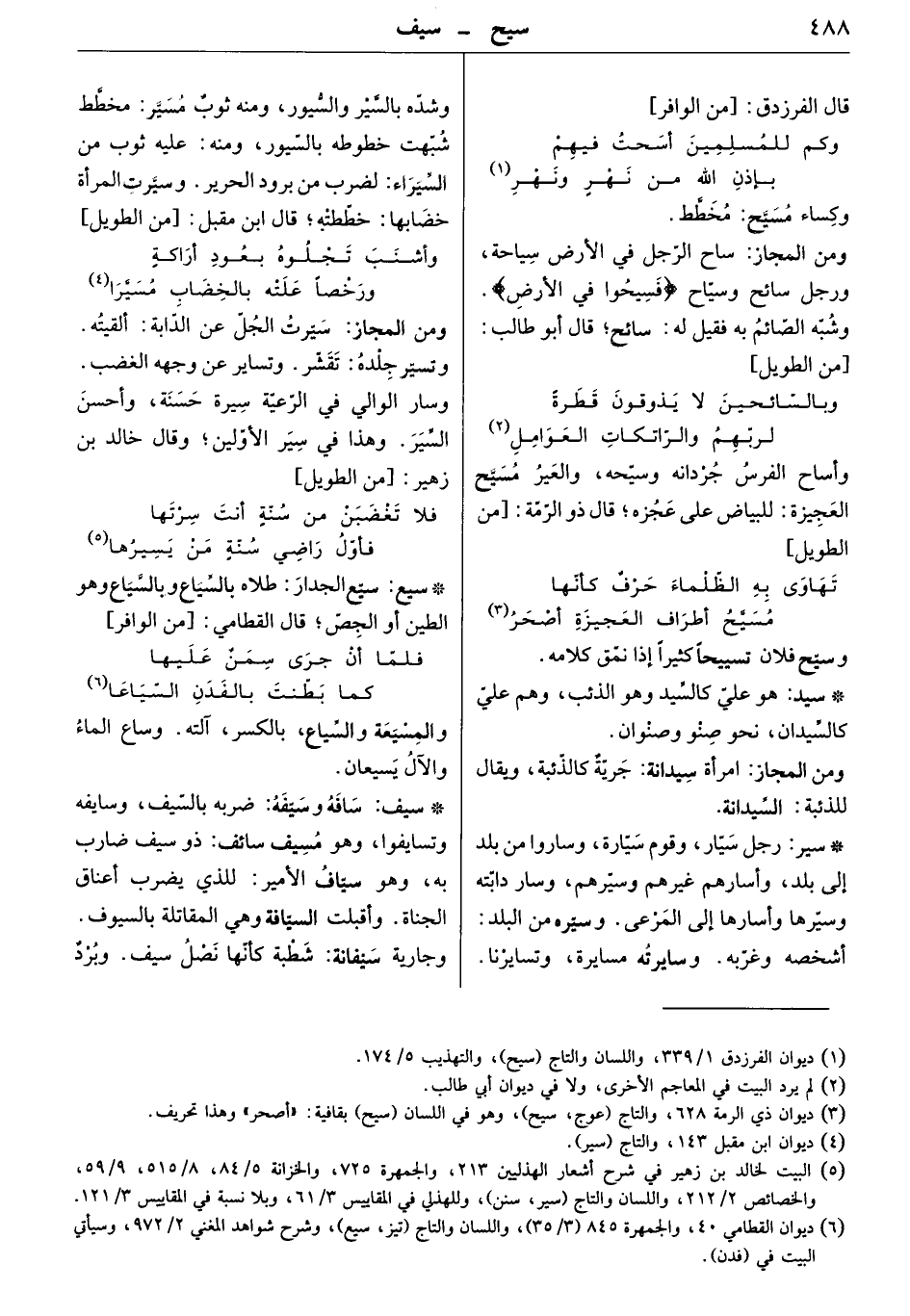 ومن المجاز: ساح الرجل في الأرض سياحة، ورجل سائح وسياح " فسيحوا في الأرض " وشبه الصائم به فقيل له: سائح. قال أبو طالب: