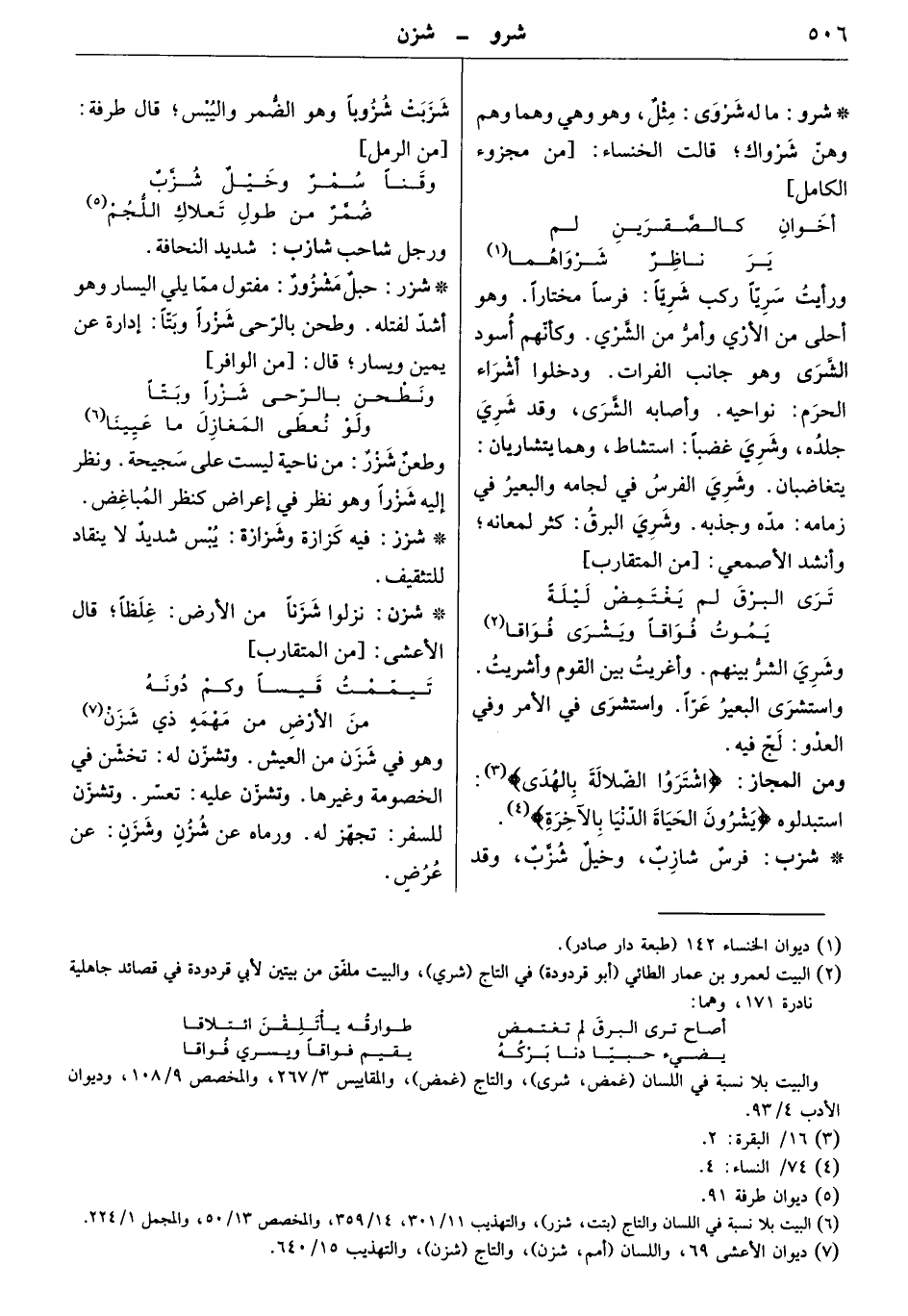 ماله شروى: مثل، وهو وهي وهما وهم وهنّ شرواك. قالت الخنساء: