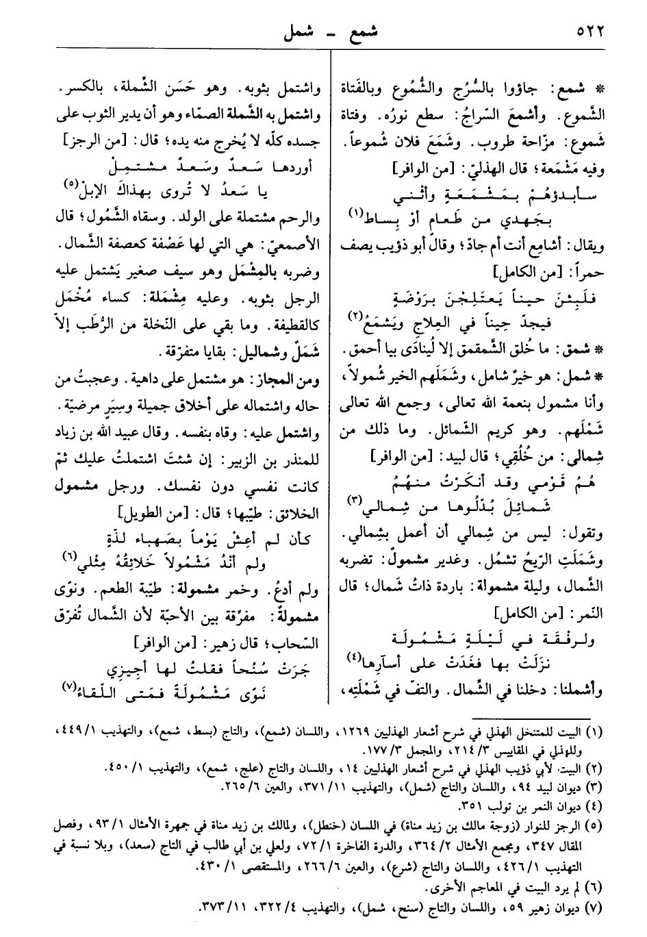 هو خير شامل، وشملهم الخير شمولاً، وأنا مشمول بنعمة الله تعالى، وجمع الله تعالى شملهم. وهو كريم الشمائل. وما ذلك من شمالي: من خلقي. قال لبيد: