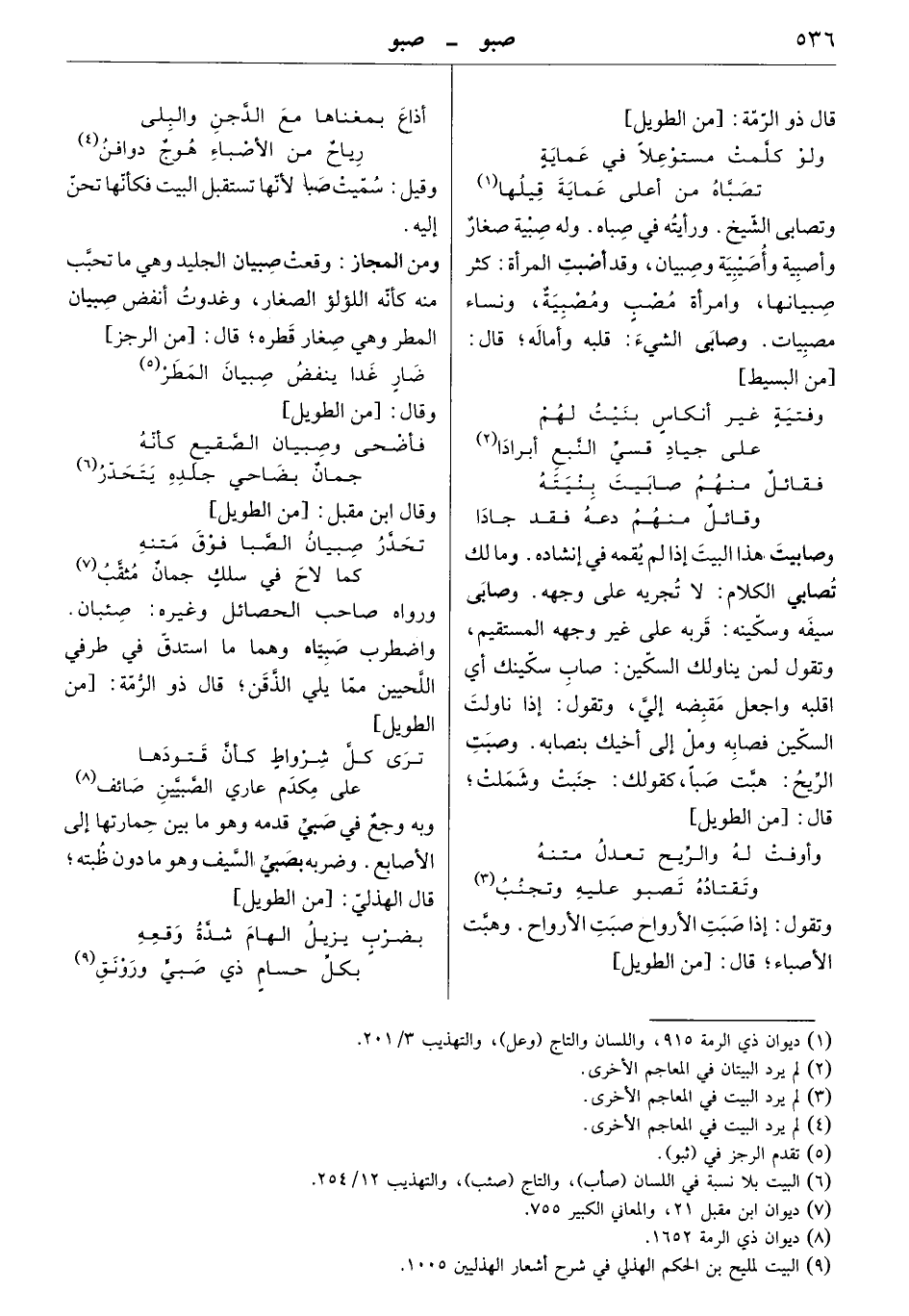 وصابيت هذا البيت إذا لم يقمه في إنشاده. ومالك تصابي الكلام: لا تجريه على وجهه. وصابي سيفه وسكينه: قربه على غير وجهه المستقيم، وتقول لمن يناولك السكين: صاب سكينك أي اقلبه واجعل مقبضه إليّ، وتقول: إذا ناولت السكين فصابه، ومل إلى أخيك بنصابه. وصبت الريح: هبت صباً، كقولك: جنبت وشملت. قال: