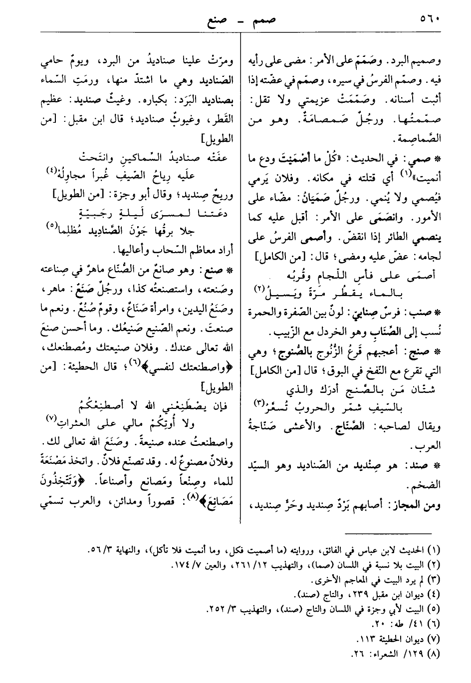 هو صانع من الصناع ماهر في صناعته وصنعته، واستصنعته كذا، ورجل صنع: ماهر، وصنع اليدين، وامرأة صناع، وقوم صنع. ونعم ما صنعت. ونعم الصنيع صنيعك. وما أحسن صنع الله تعالى عندك. وفلان صنيعتك ومصطنعك، واصطنعتك لنفسي. قال الطحيئة: