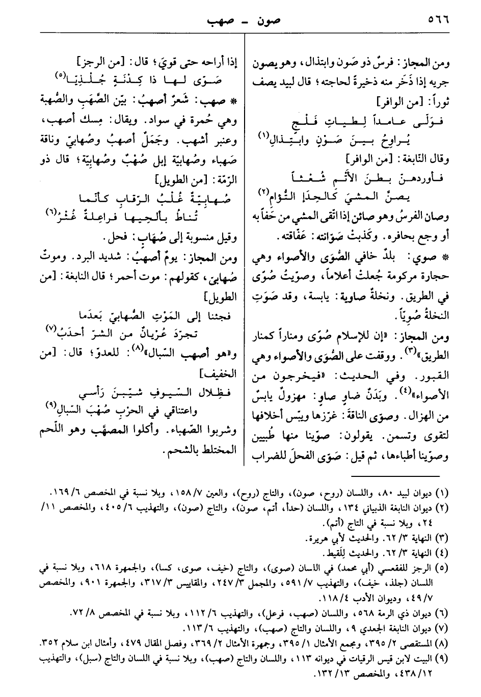 ومن المجاز: " إن للإسلام صوًى ومناراً كمنار الطريق " ووقفت على الصوى والأصواء وهي القبورز وفي الحديث " فيخرجون من الأصواء " وبدن ضاوٍ صاوٍ: مهزول يابس من الهزال. وصوّى الناقة: غرزها ويبس أخلافها لتقوى وتسمن. يقولون: صوينا منها طبيين وصوينا أطباءها، ثم قيل: صوى الفحل للصراب إذا أراحه حتى قوي. قال: