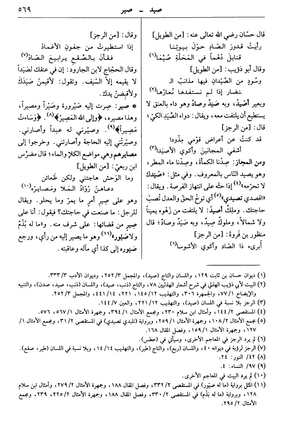 صرت إليه صيرورة وصيراً ومصيراً، وهذا مصيره، " وغلى الله المصير " " وساءت مصيراً " وصيرني له عبداً وأصارني. وصيرتني إليه الحاجة وأصارتني. وخرجوا إلى مصايرهم وهي مواضع الكلأ والماء. قال مضرس بن ربعيّ: