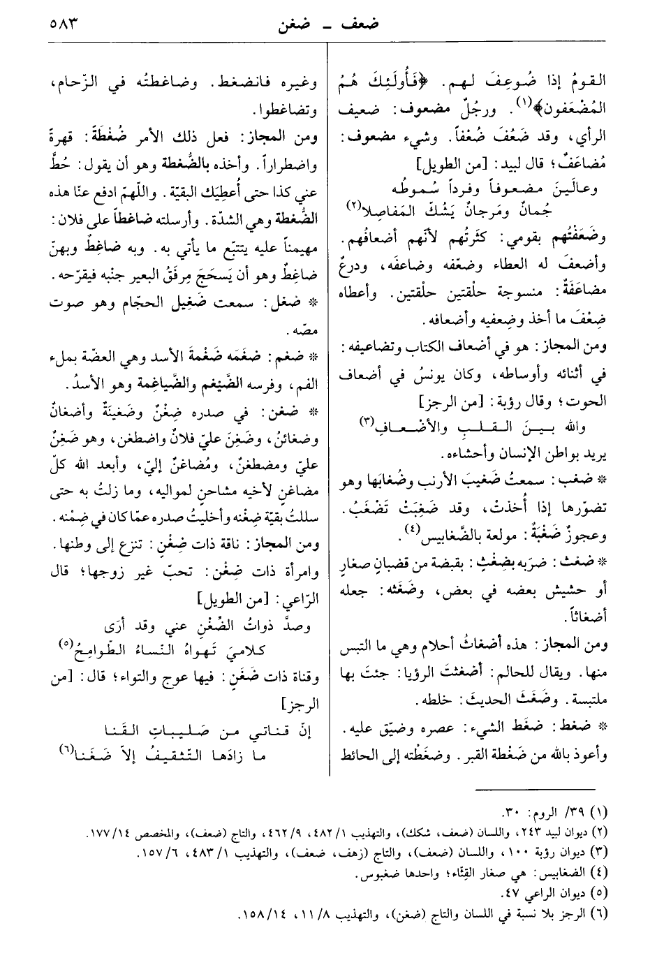 ومن المجاز: هو في أضعاف الكتاب وتضاعيفه: في أثنائه وأوساطه، وكان يونس في أضعاف الحوت. وقال رؤبة:
