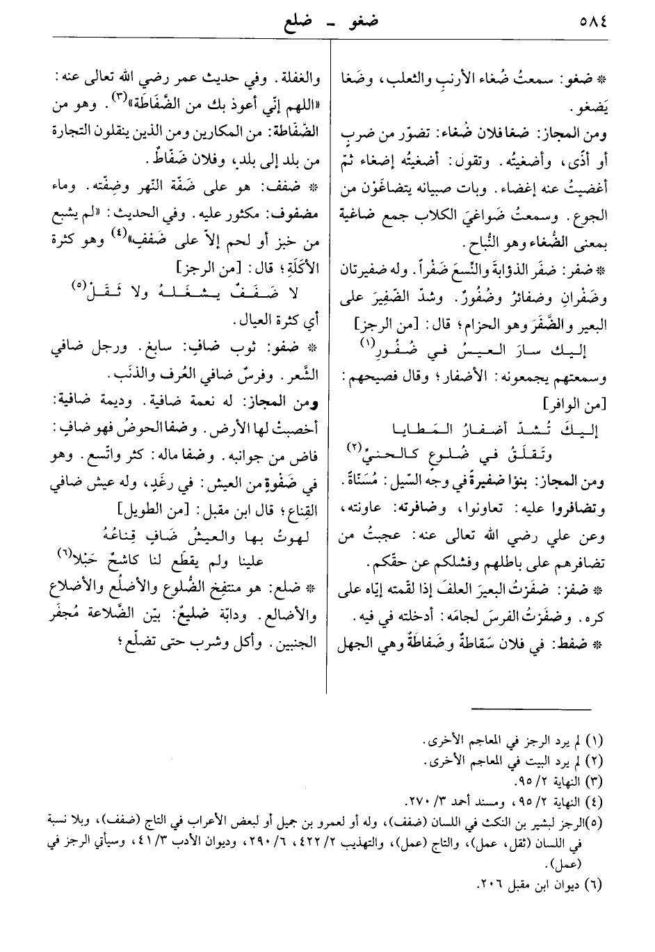 هو على ضفة النهر. وماء مضفوف: مكثور عليه. وفي الحديث " لم يشبع من خبز أو لحم إلا على ضفف " وهو كثرة الأكلة. قال: