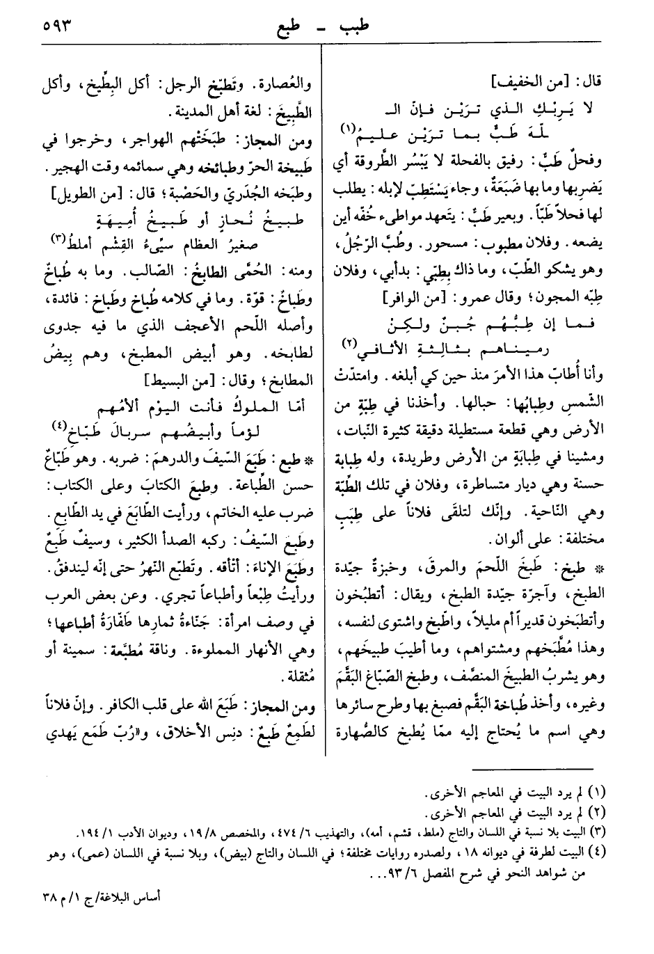 ومنه: الحمى الطابخ: الصالب. وما به طباخ: قوّة. وما في كلامه طباخ: فائدة وأصله اللحم الأعجف الذي ما فيه جدوى لطابخه. وهو أبيض المطبخ، وهم بيض المطابخ. وقال: