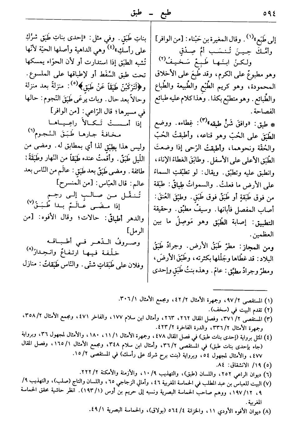 وليس هذا بطبق لذا أي بمطابق له. ومضى من الليل طبق. وأقمت عنده طبقاً من النهار وطبقة: طائفة. ومضى طبق بعد طبق: عالم من الناس بعد عالم. قال العبّاس: