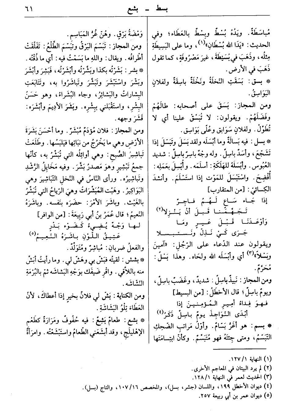 ومن الكناية: بش لي فلان بخير إذا أعطاك، لأن العطاء تلو البشاشة.