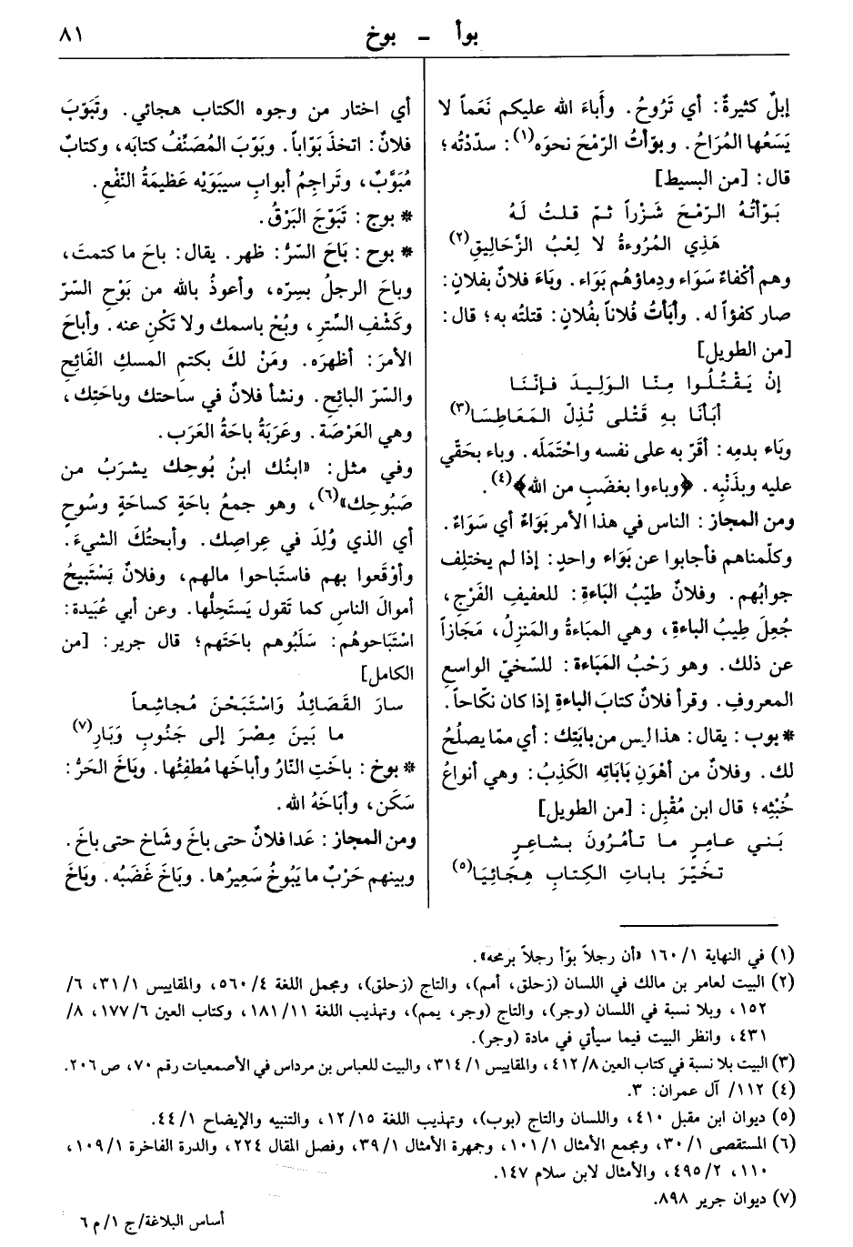 إبل كثيرة أي تروح. وأباء الله عليكم نعماً لا يسعها المراح. وبوأت الرمح نحوه: سددته. قال: