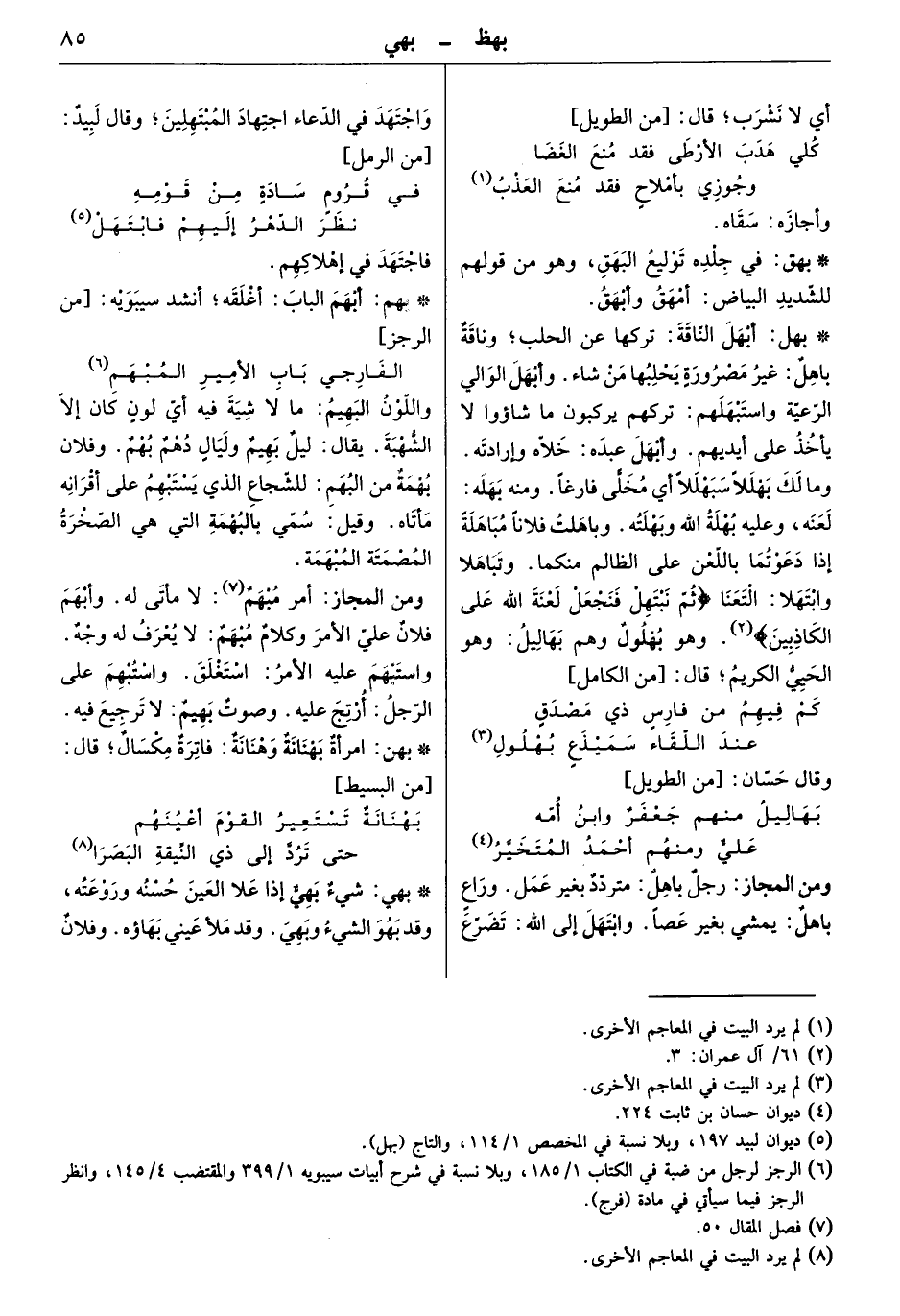 ومن المجاز: رجل باهل: متردد بغير عمل. وراع باهل: يمشي بغير عصاً. وابتهل إلى الله: تضرع واجتهد في الدعاء اجتهاد المبتهلين. وقال لبيد: