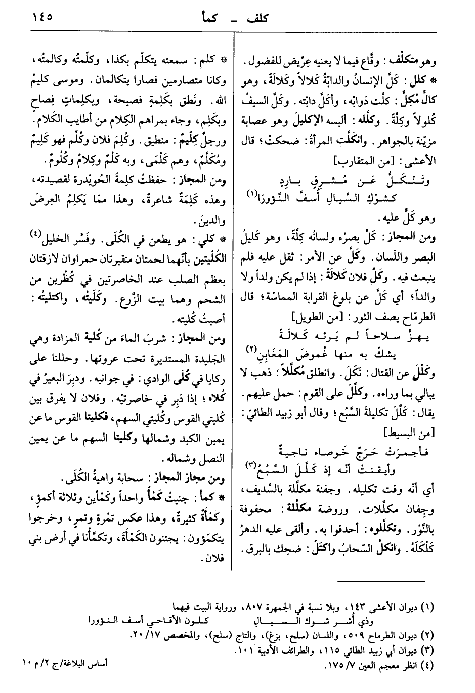 ومن المجاز: حفظت كلمة الحويدرة لقصيدته، وهذه كلمة شاعرة، وهذا مما يكلم العرض والدين.