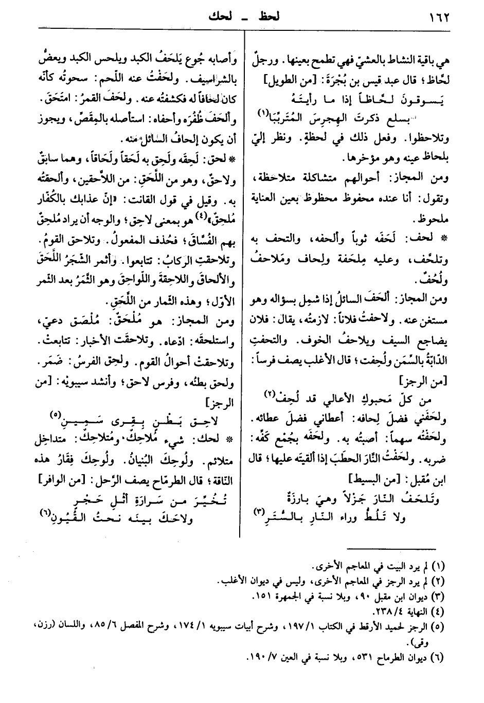 ولحفني فضل لحافه: أعطاني فضل عطائه. ولحفته سهماً: أصبته به. ولحفه مجمع كفّه: ضربه. ولحفت النّار الحطب إذا ألقيته عليها. قال ابن مقبل: