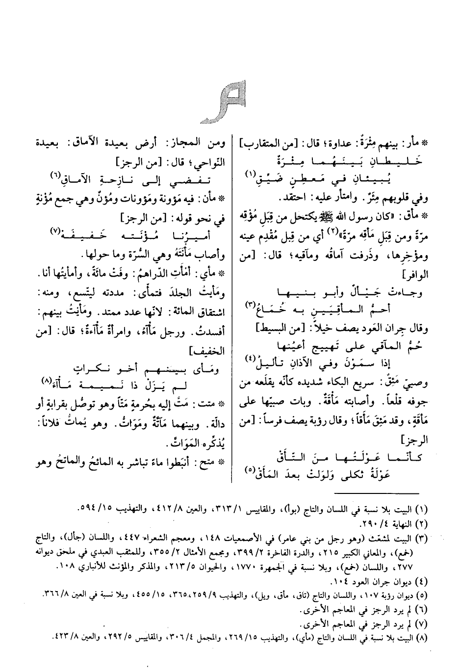 ومن المجاز: أرض بعيدة الآماق: بعيدة النواحي. قال: