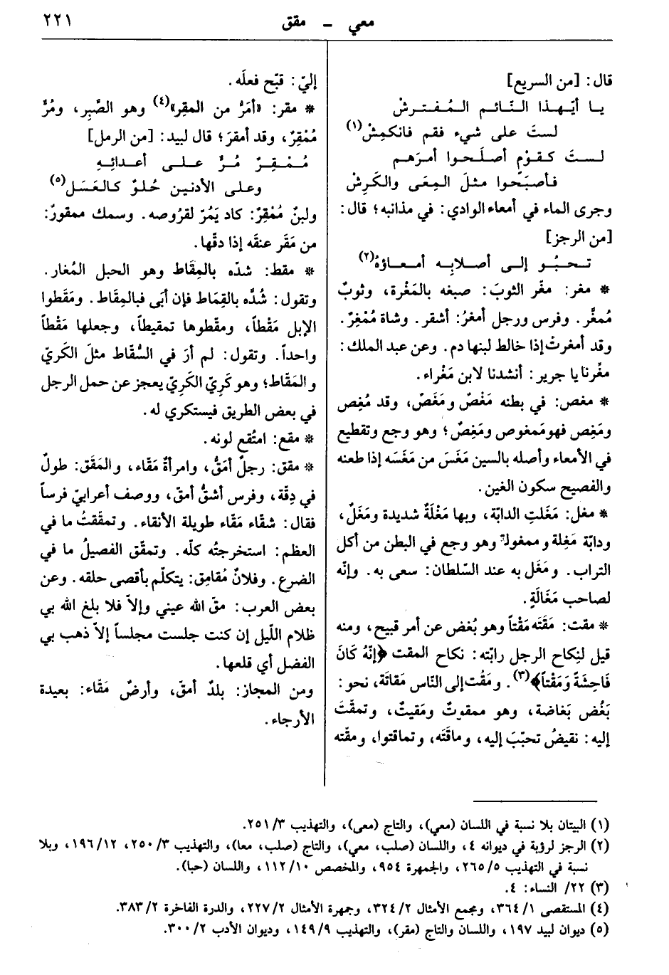 رج أمق، وامرأة مقاء، والمقق: طول في دقّة، وفرس أشقّ أمقّ، ووصف أعرابي فرساً فقال: شقّاء مقّاء، طويلة الأنقاء. وتمققت ما في العظم: استخرجته كله. وتمقق الفصيل ما في الضّرع. وفلان مقامق: يتهكلم بأقصى حلقه. وعن بعض العرب: مقّ الله عيني وإلا فلا بلغ الله بي ظلام الليل إن كنت جلست مجلساً إلا ذهب بي الفضل أي قلعها.