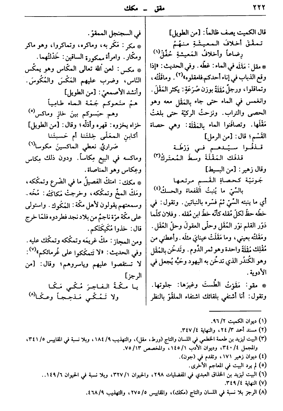 امتك الفصيل ما في الضرع وتمكّكه، ومكّ المخ وتمككه، وخرجت مكاكته: مخّه. وسمعتهم يقولون لأهل مكة: المكوك واستولى على مكّة مرة ناجمٌ من بلاد نجد فطردوه فلما خرج قال: خذوا مكيكتكم.