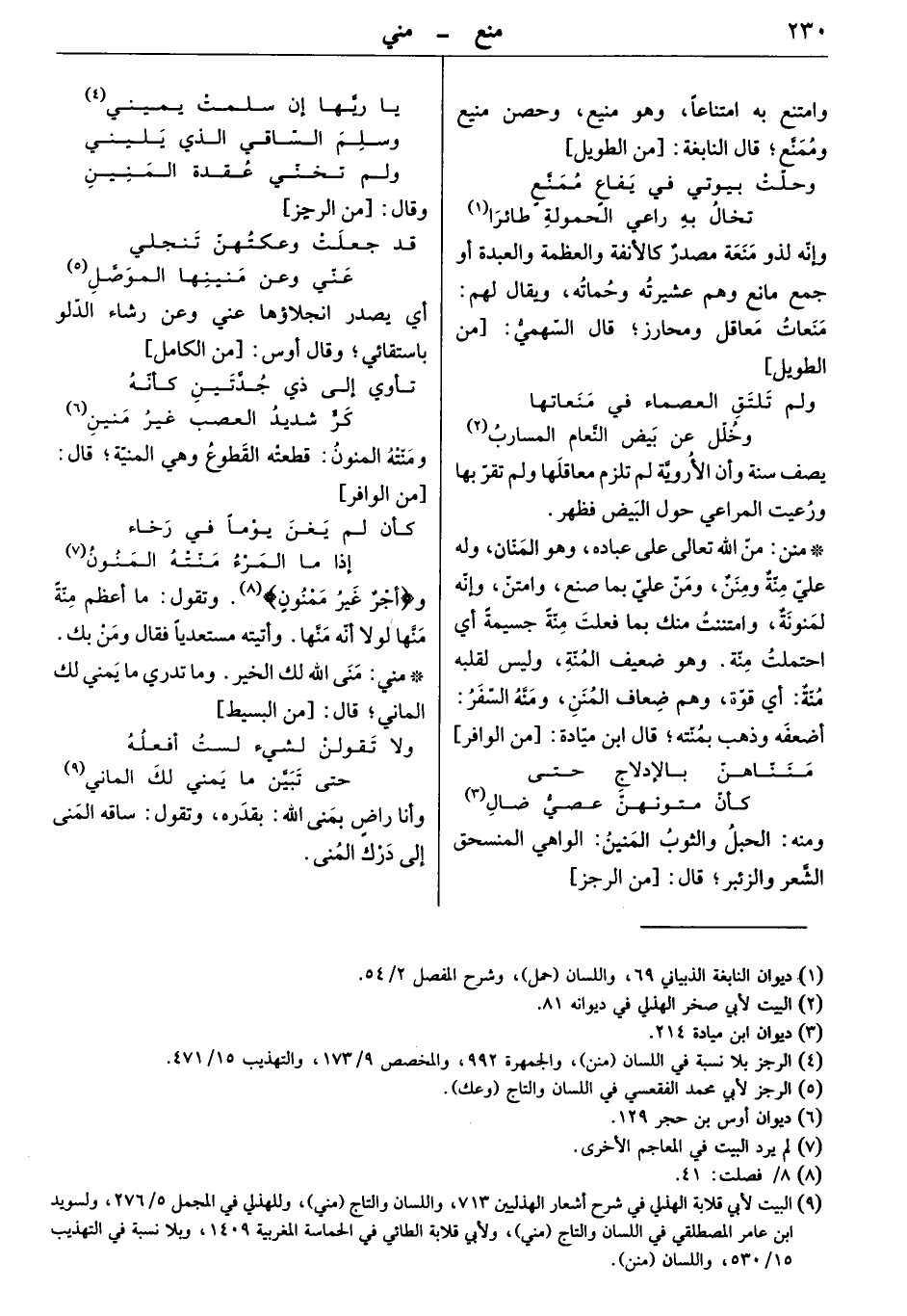 ومنّته المنون: قطعته القطوع وهي المنيّة. قال: