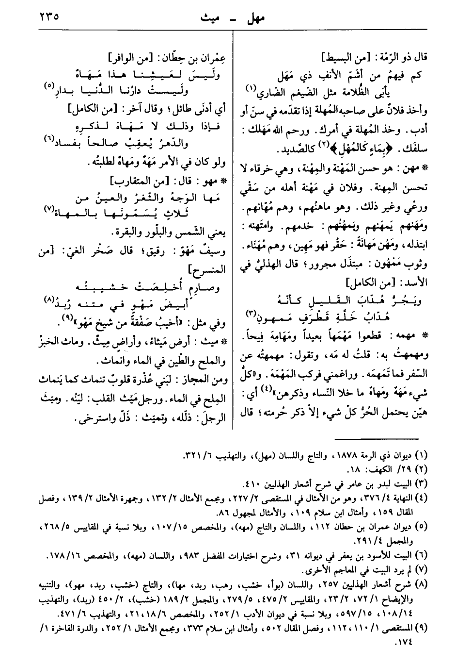 ومن المجاز: لبني عذرة قلوب تنماث كما ينماث الملح في الماء، ورجل ميّث القلب: ليّنه. وميّث الرجل: ذلّله، وتميّث: ذلّ واسترخى.