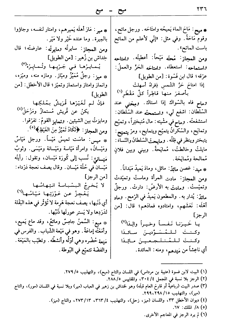 وماح فاه بالسّواك إذا استاك. ومحني عند السلطان: اشفع لي، واستمحته عند السلطان: استشفعته. وماح في مشيته: مال متبختراً، وتميح وتمايح، والسكران يتميح ويتمايح، ومرّ يتميح: يتبختر وينظر في ظلّه. ومايحت السلطان والنساء: ما يلتُ وخالطت ممايحةً. وبيني وبين فلان ممالحة وممايحة.