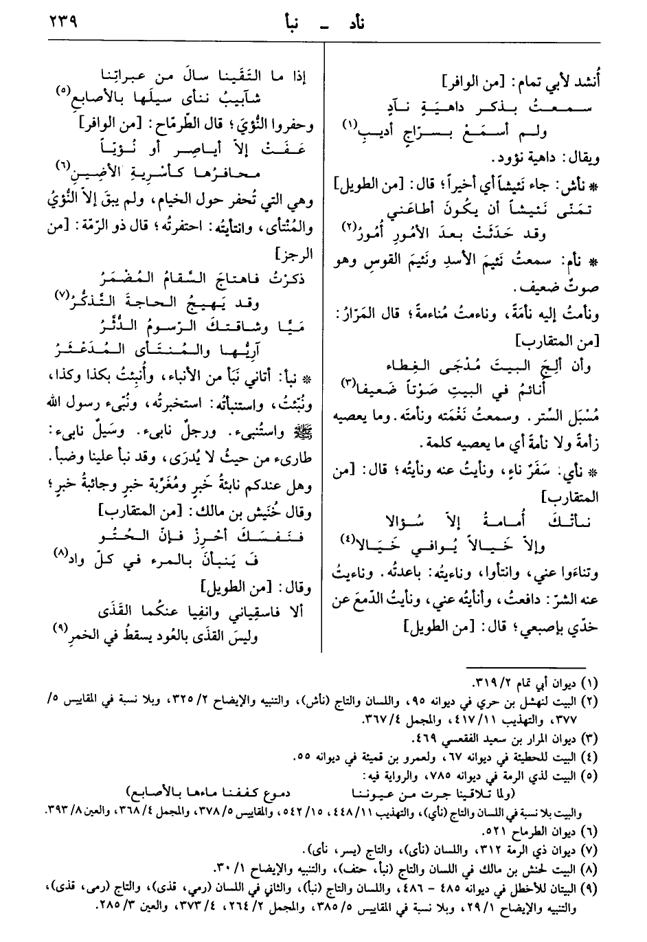 وتناءوا عني، وانتأوا، وناءيته: باعدته. وناءيت عنه الشر: دافعت، وأنأيته عني، ونأيت الدمع عن خدّي بإصبعي. قال: