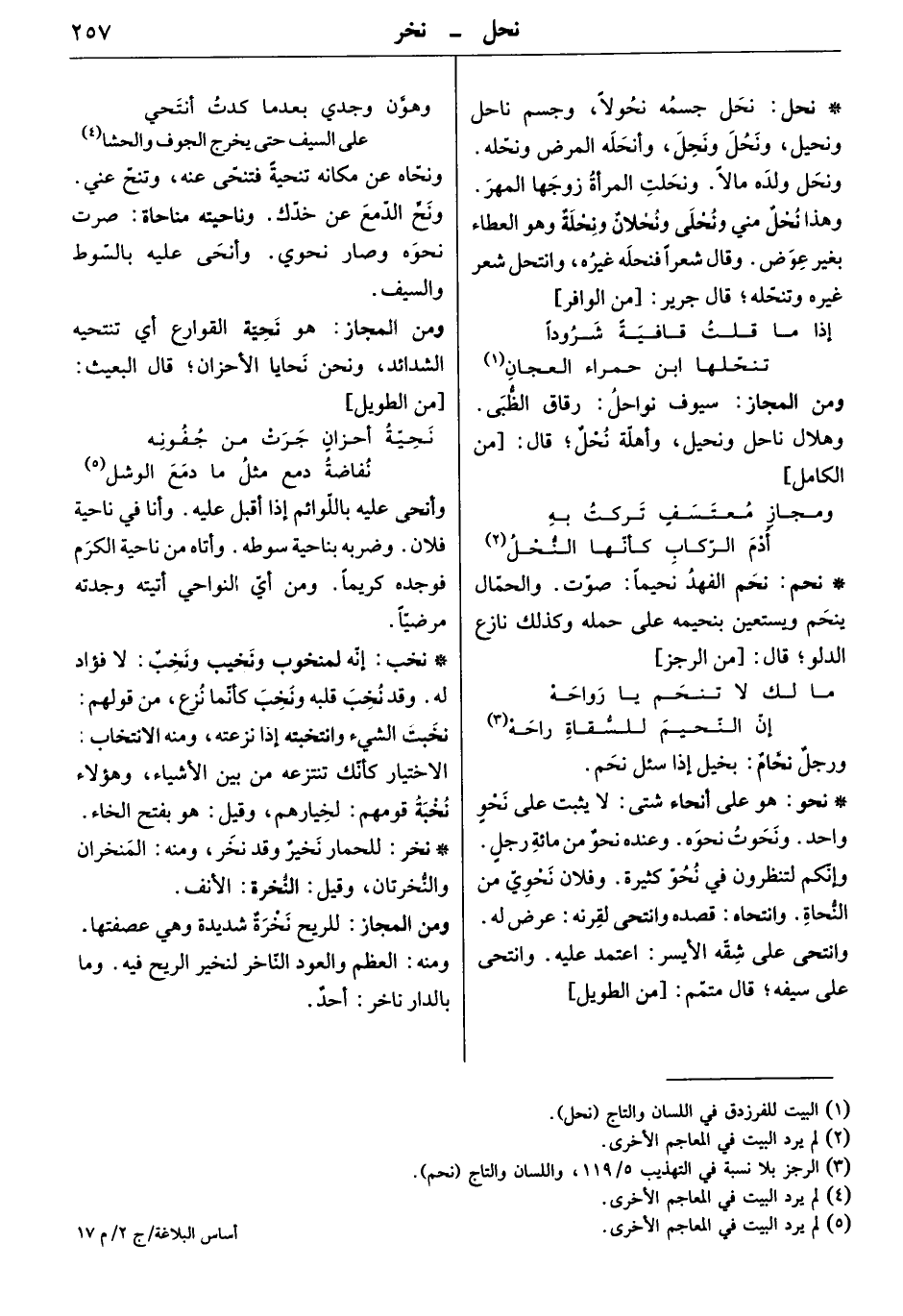 ومن المجاز: هو نحيّة القوارع أي تنحيه الشدائد، ونحن نحايا الأحزان. قال البعيث: