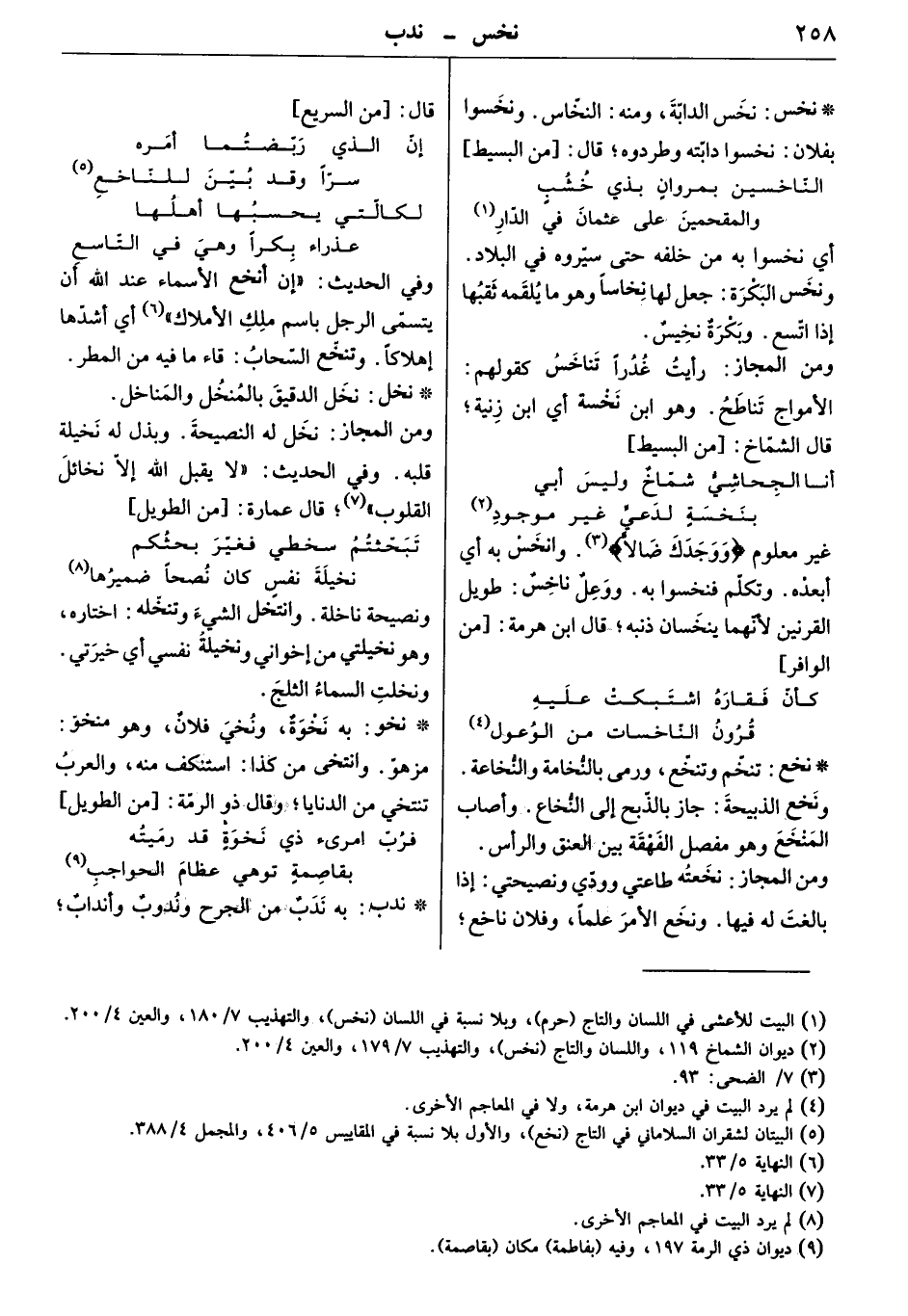 غير معلوم " ووجدك ضالاً " وانخس به أي أبعده. وتكلّم فنخّسوا به. ووعلٌ ناخس: طويل القرنين لأنهما ينخسان ذنبه. قال ابن هرمة: