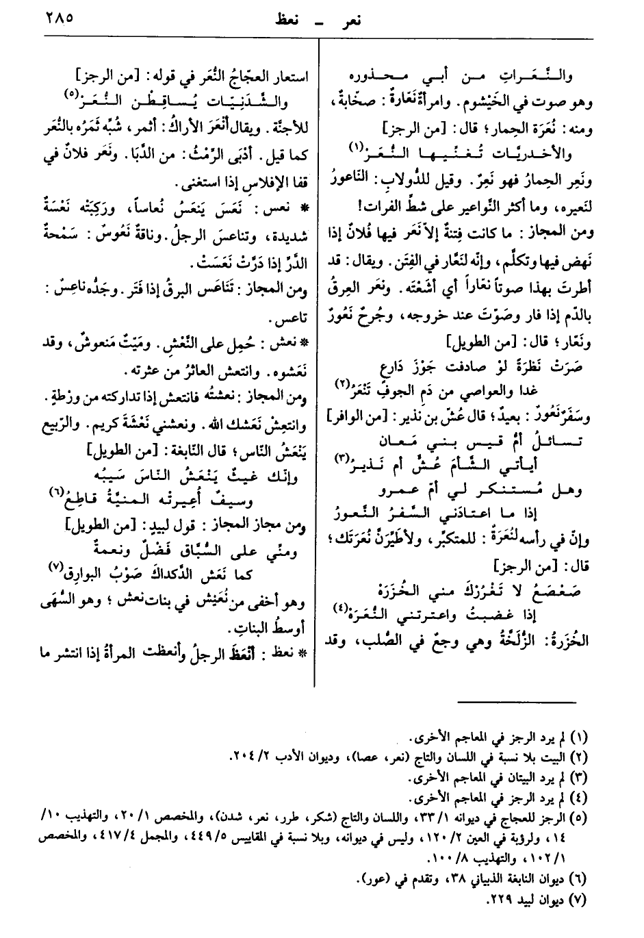 ونعر اعلحمار فهو نعر. وقيل للدّولاب: النّاعور: لنعيره، وما أكثر النّواعير على شطّ الفرات!.