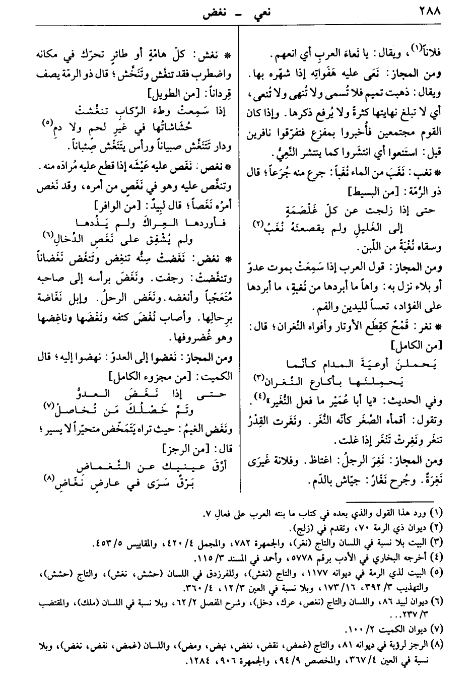 نغضت سنّه تنغض وتنغض نغضاناً وتنغّضت: رجفت. ونغض برأسه إلى صاحبه متعجباً: وأنغضته. ونغض الرحل. وإبل نغّاضة برحالها. وأصاب نغض كتفه وناغضها وهو غضروفها.