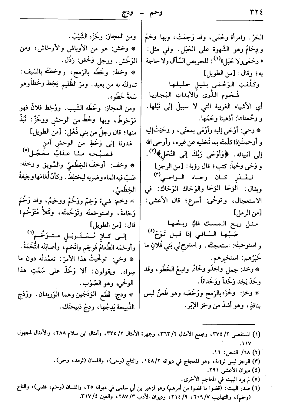 واستوحيته: استعجلته. واستوح لي بني فلان ما خبرهم: استخبرهم.