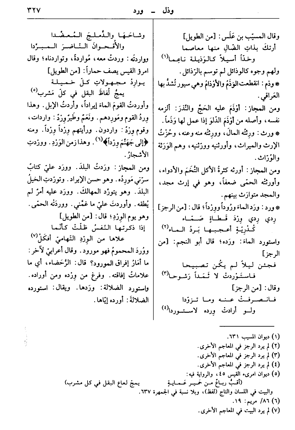 وأوردت القوم الماء إيراداً، وأوردت الإبل. وهذا ورد القوم وموردهم. ونعم وطير ورد: واردات، وقوم وِردٌ: واردون. ورأيتهم وِردا وِردا. ومنه " إلى جهنّم ورداً " وهذا زمن الورد. وورّدت الأشجار.