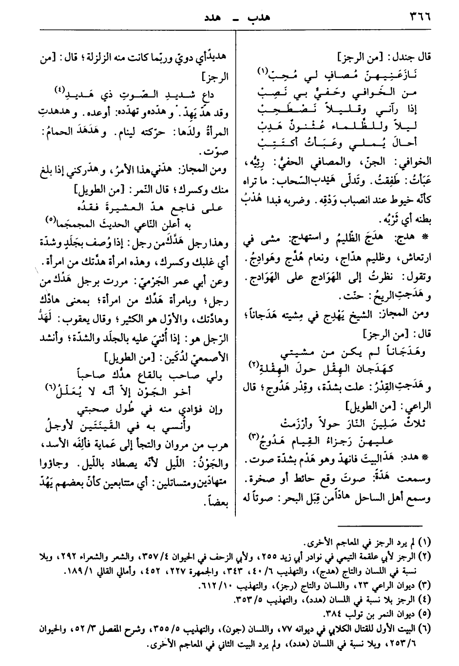 الخوافي: الجنّ، والمصافي الحفيّ: رئيه، عبأت: طفقت. وتدلى هيدب السحاب: ما تراه كأنه خيوط عند انصباب ودقه. وضربه فبدأ هدب بطنه أي ثربه.