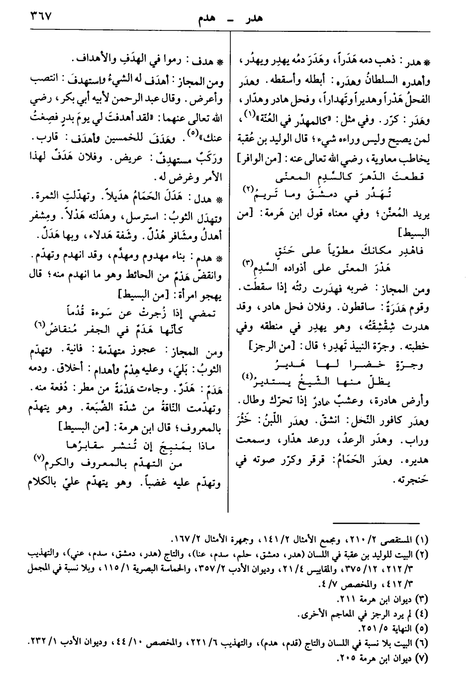 ذهب دمه هدراً، وهدر دمه يهدر ويهدر، وأهدره السلطان وهدره: أبطله وأسقطه. وهدر الفحل هدراً وهديراً وتهداراً، وفحل هادر وهدّار، وهدّر: كرّر. وفي مثل " كالمهدّر في العنّة " لمن يصيّح وليس وراءه شيء. قال الوليد بن عقبة يخاطب معاوية رضي الله تعالى عنه: