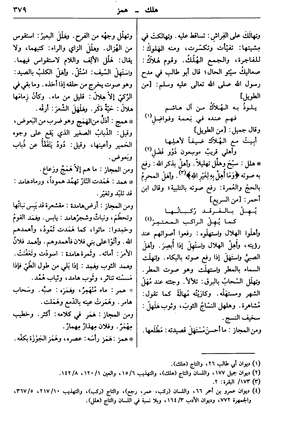 سبّح وهلّل تهليلاً. وأهلّ بذكر الله: رفع به صوته " وما أهلّ به لغير الله ". وأهلّ المحرم بالحجّ والعمرة: رفع صوته بالتلبية. وقال ابن أحمر: