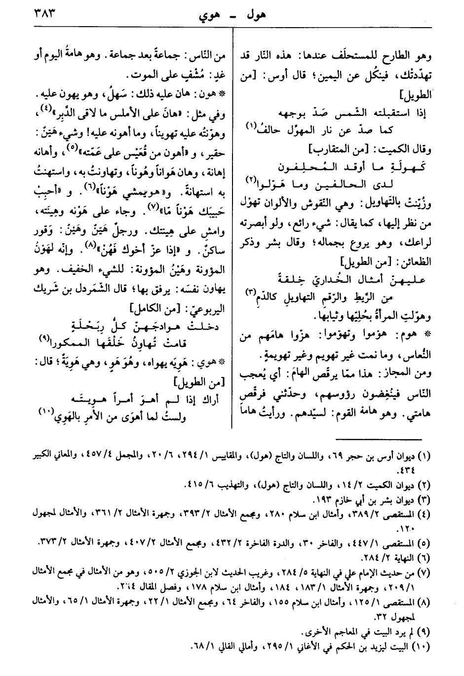 هان عليه ذلك: سهل، وهو يهون عليه. وفي مثل " هان على الأملس ما لاقى الدّبر " وهوّنته عليه تهويناً، وما أهونه عليه! وشيء هيّنٌ: حقير، و" أهون من قعيس على عمّته " وأهانه إهانة، وهان هوانا وهُوناً، وتهاونت به، واستهنت به استهانةً. وهو " يمشي هوناً ". و" أحبب حبيبك هوناً ما ". وجاء على هونه وهينته، وامش على هينتك. ورجلٌ هينٌ وهينٌ: وقور ساكن. و" إذا عز أخوك فهن ". وإنه لهون المؤونة وهين المؤونة: للشيء الخفيف. وهو يهاون نفسه: يرفق بها. قال الشمردل بن شريك اليربوعيّ: