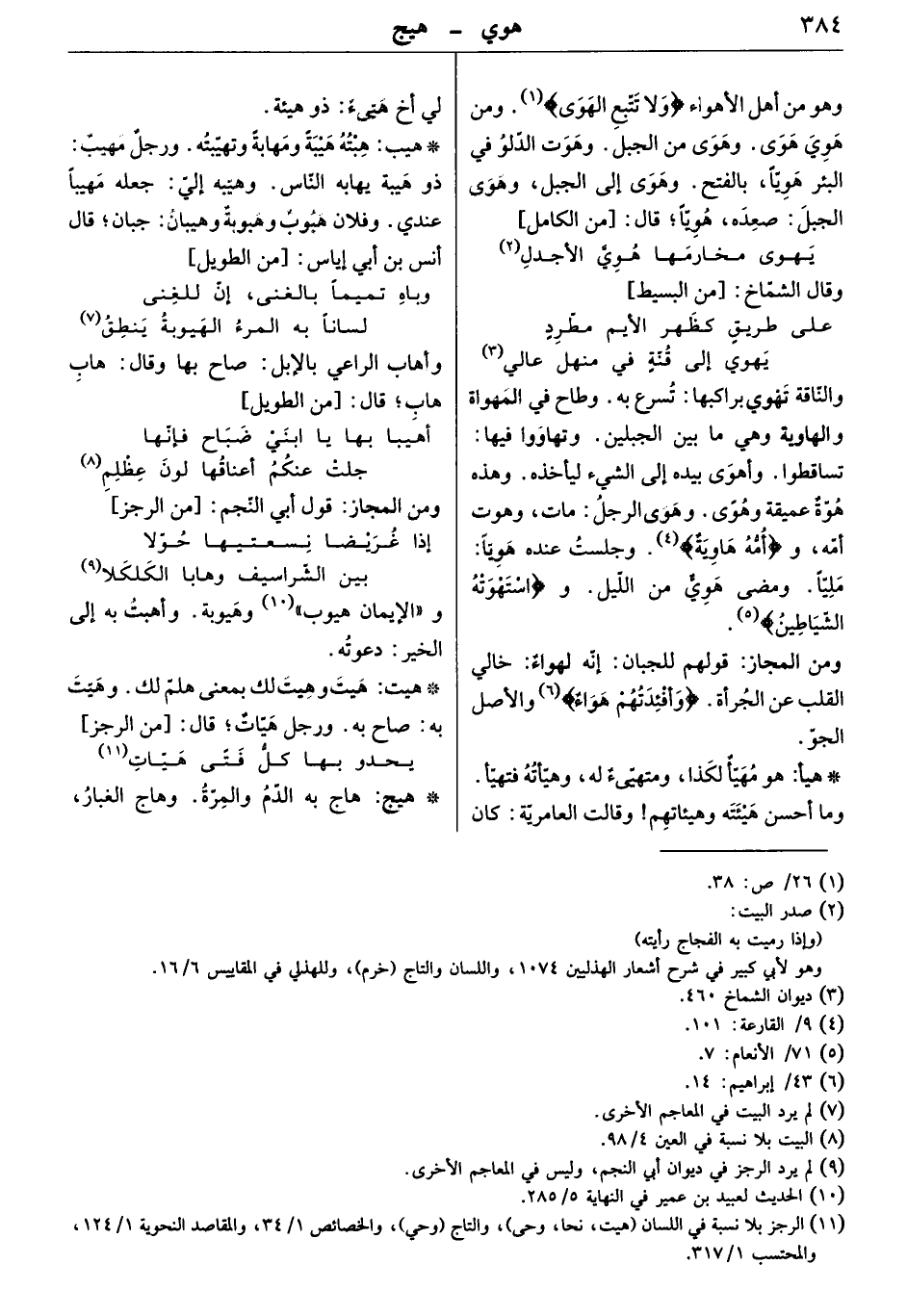 وهو من أهل الأهواء " ولا تتّبع الهوى " ومن هويَ هوَى. وهوى من الجبل. وهوت الدلو في البئر هوياص بالفتح. وهوى إلى الجبل، وهوى الجبل: صعده هوياً. قال:
