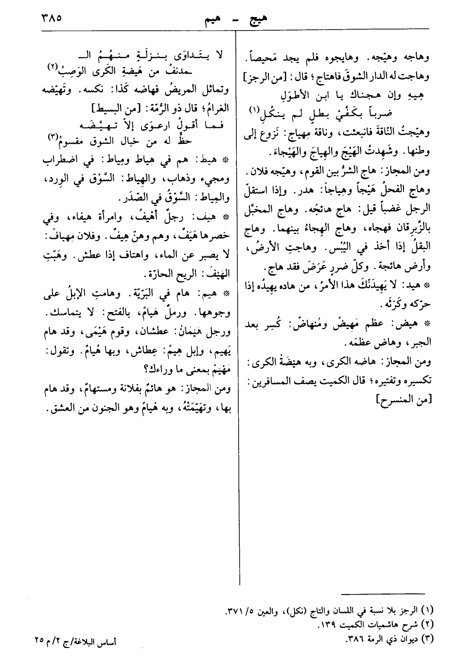 ومن المجاز: هاج الشرّ بين القوم، وهيّجه فلان. وهاج الفحل هيجاً وهياجاً: هدر. وإذا استقلّ الرجل غضباً قيل: هاج هائجه. وهاج المخبّل بالزّبرقان فهجاه، وهاج الهجاء بينهما. وهاج البقل إذا أخذ في اليبس. وهاجت الأرض، وأرض هائجة. وكلّ ضررٍ عرض فقد هاج.