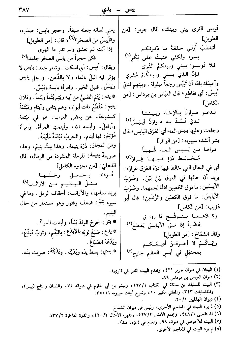 يريد سنامها، والأرانب: أحقاف الرمل. وما في سيره يتم: ضعف وفتور وهو مستعار من حال اليتيم.