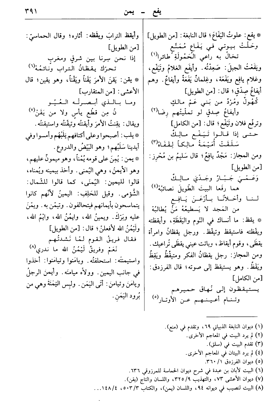 واستيمنته: استحلفته. ويامنوا وتيامنوا: أخذوا في جانب اليمين. وولاذه ميامنه. وأيمن الرجل ويامن وتيامن: أتى اليمن. ولبس اليمنة وهي من برود اليمن.