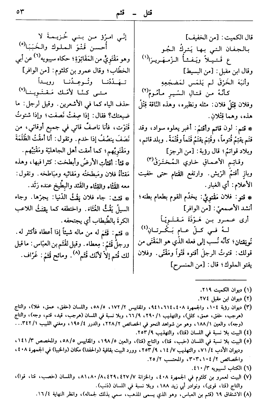 حذف الياء كما في الأشعرين. وقيل لرجل: ما ضيعتك؟ فقال: إذا صفت نصفت، وإذا شتوت قتوت، فأنا ناصف قاتي، في جميع أوقاتي، من تصف يتصف إذا خدم. وتقول: أنا أمقت الظلمة ومقتويهم، كما أمقت أهل الجاهلية ومقتيّهم.