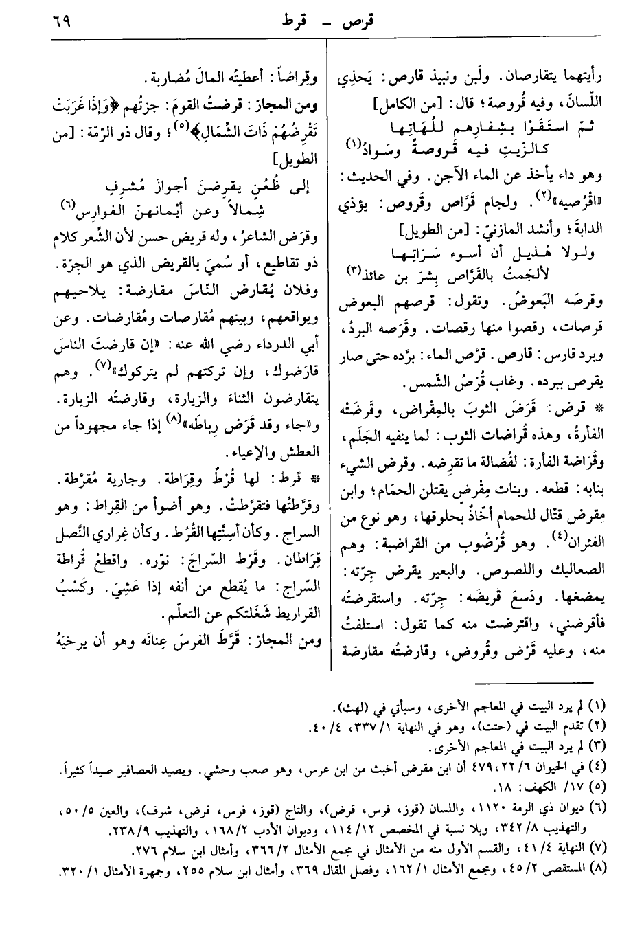 ومن المجاز: قرضت القوم: جزتهم " وإذا غربت تقرضهم ذات الشِّمال ". وقال ذو الرمة: