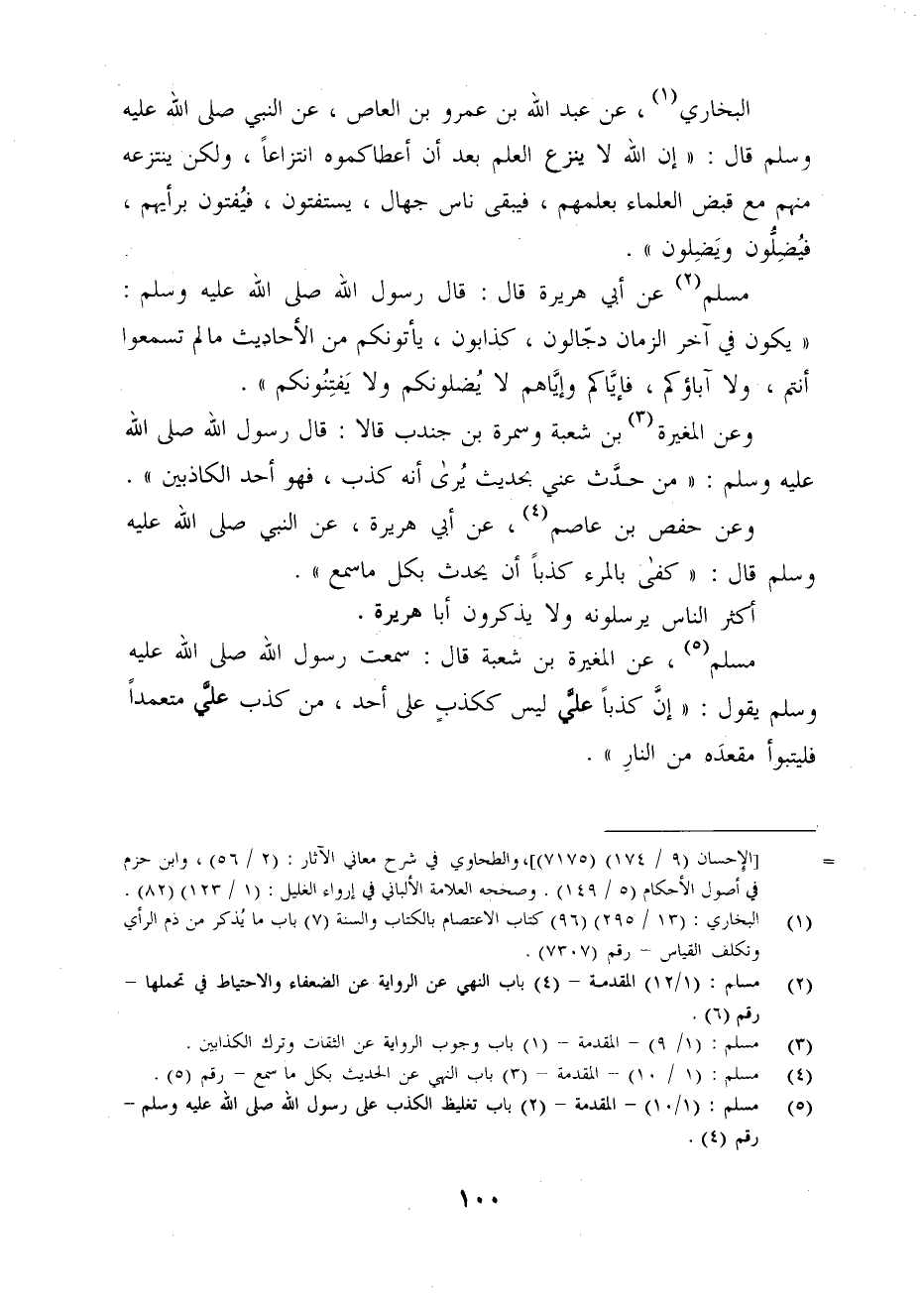 (¬5) مسلم: (1/ 10) -المقدمة- (2) باب تغليظ الكذب على رسول الله - صلى الله عليه وسلم - رقم (4).