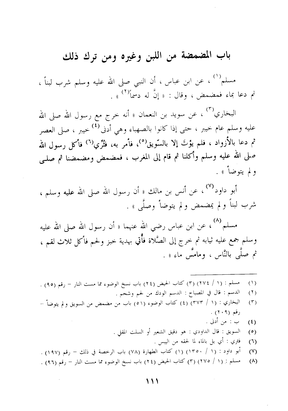 (¬3) البخاري: (1/ 373) (4) كتاب الوضوء (51) باب من مضمض من السويق ولم يتوضأ - رقم (209).