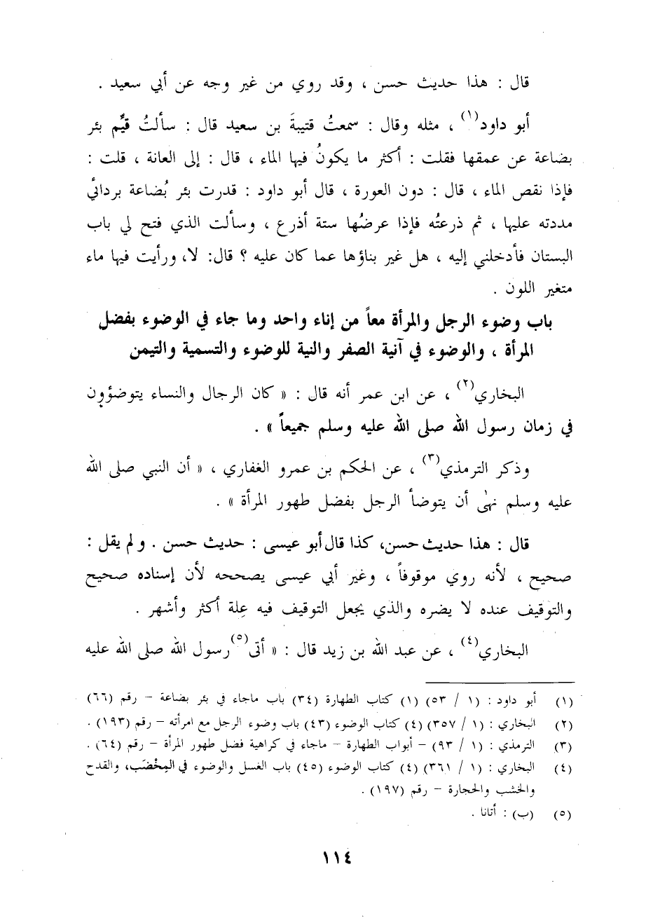 (¬3) الترمذي: (1/ 93) - أبواب الطهارة - ما جاء في كراهية فضل طهور المرأة - رقم (64).