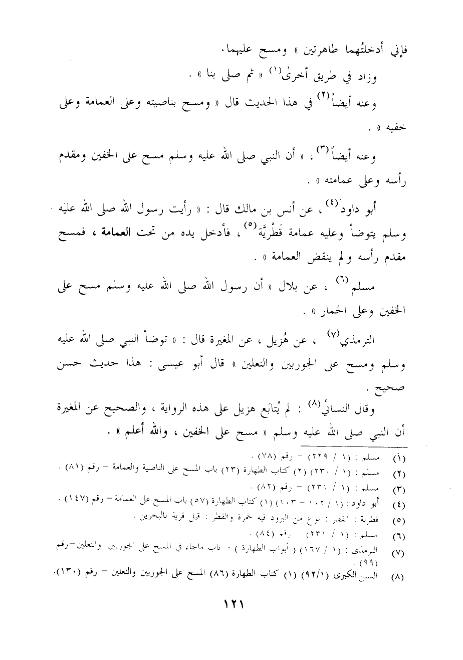 (¬7) الترمذي (1/ 167) (أبواب الطهارة) - باب ما جاء في المسح على العمامة - رقم (99).